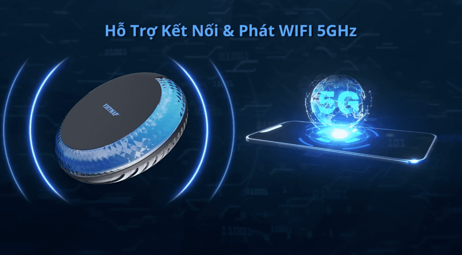 Android Box Vietmap BS10 Lite hỗ trợ kết nối và phát WiFi 5G, giúp người dùng tận hưởng tốc độ cao và ổn định trong việc lướt web, xem video và trải nghiệm các ứng dụng trực tuyến một cách nhanh chóng và suôn sẻ.
