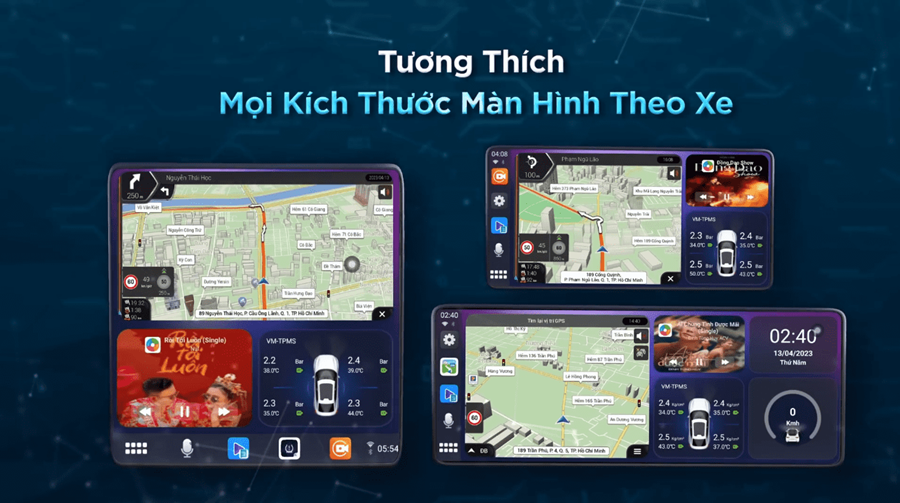 Với tính năng này, người dùng không cần phải lo lắng về việc cài đặt phức tạp hay tùy chỉnh màn hình, mà chỉ cần cắm Vietmap BS10 Lite vào và bắt đầu tận hưởng trải nghiệm giải trí thông minh và tiện ích trong xe. Khả năng tự động điều chỉnh và thay đổi giao diện giúp đảm bảo màn hình hiển thị tối ưu và phù hợp với từng loại xe, tạo ra một giao diện mượt mà và thân thiện cho người dùng.