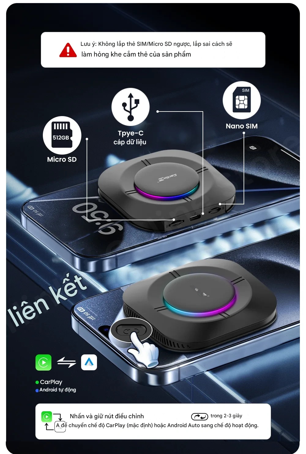 - Android Auto: Nếu xe chỉ hỗ trợ Android Auto mà không có CarPlay (như VinFast), cần cấu hình trước khi sử dụng.