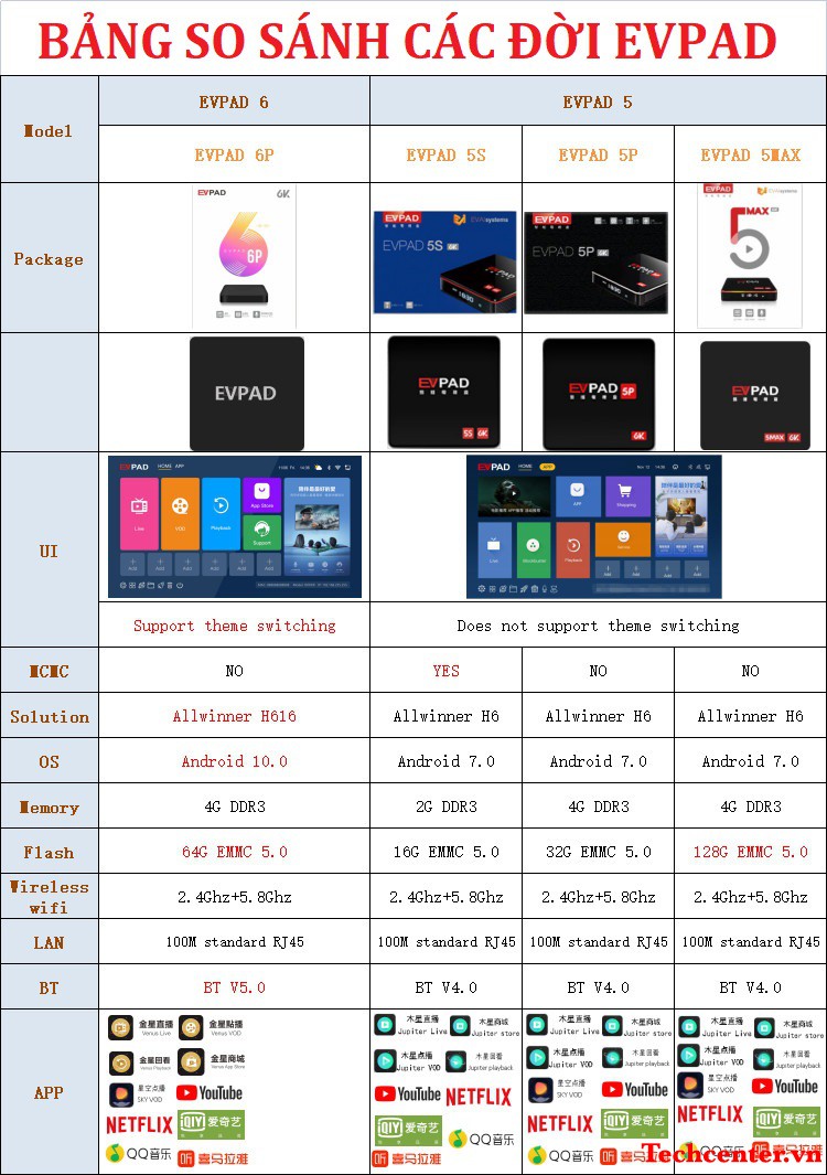 - Giữa năm 2023 thị trường Android Box lại được hâm nóng bởi 1 người ae đến từ thương hiệu đình đám EVPAD đã quá nổi tiếng trên toàn thế giới, để biết thêm chi tiết về nhân vật chính này thì ngày hôm nay TechCenter xin giới thiệu đến quý khách hàng 1 siêu phẩm mang tên gọi Evpad 6P.