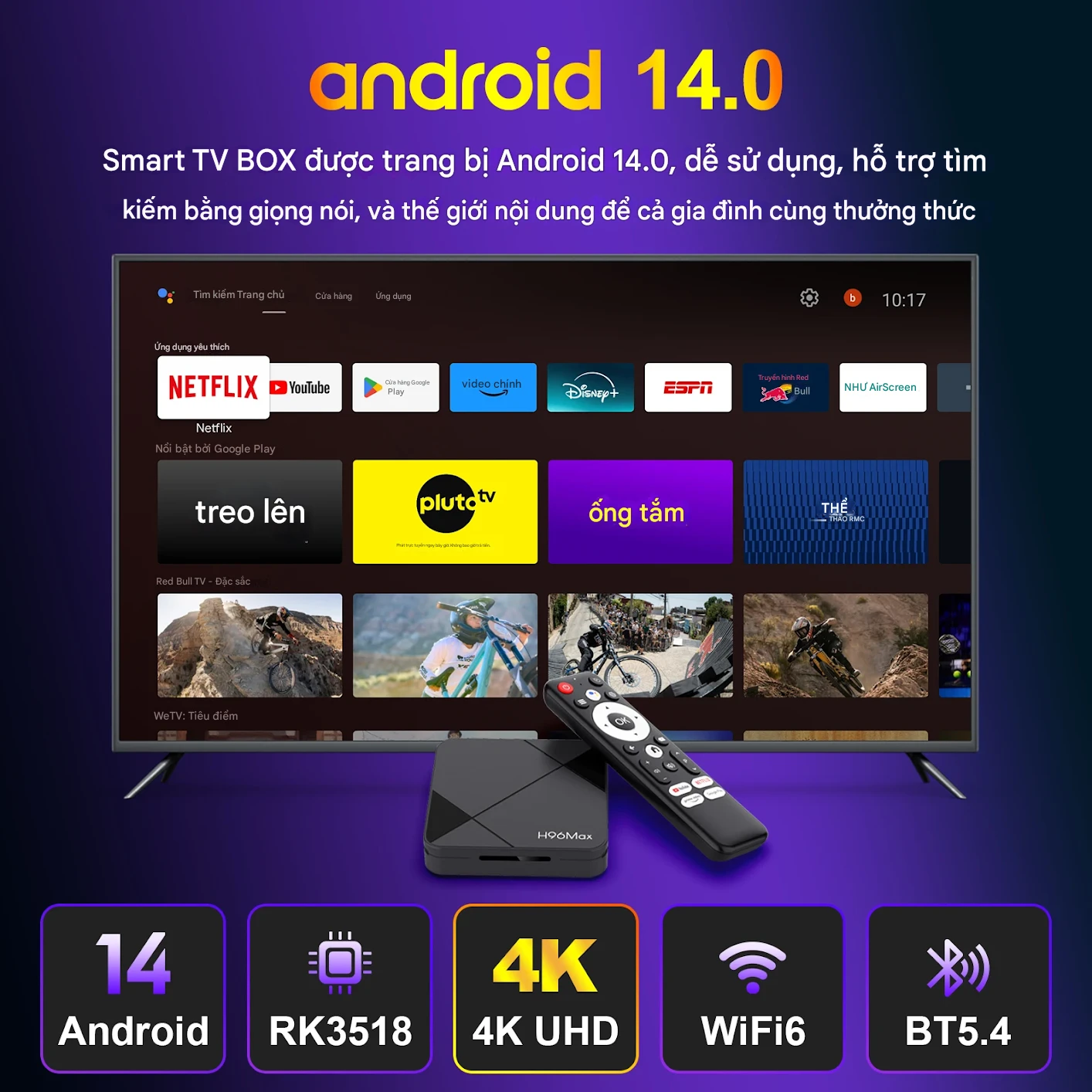 Sản phẩm giá rẻ, Android 14 chạy mượt tất cả các ứng dụng giải trí online như xem phim, truyền hình, thể thao, youtube có remote giọng nói hỗ trợ chỉ cần bấm và nói, nên mua nhé mọi người.