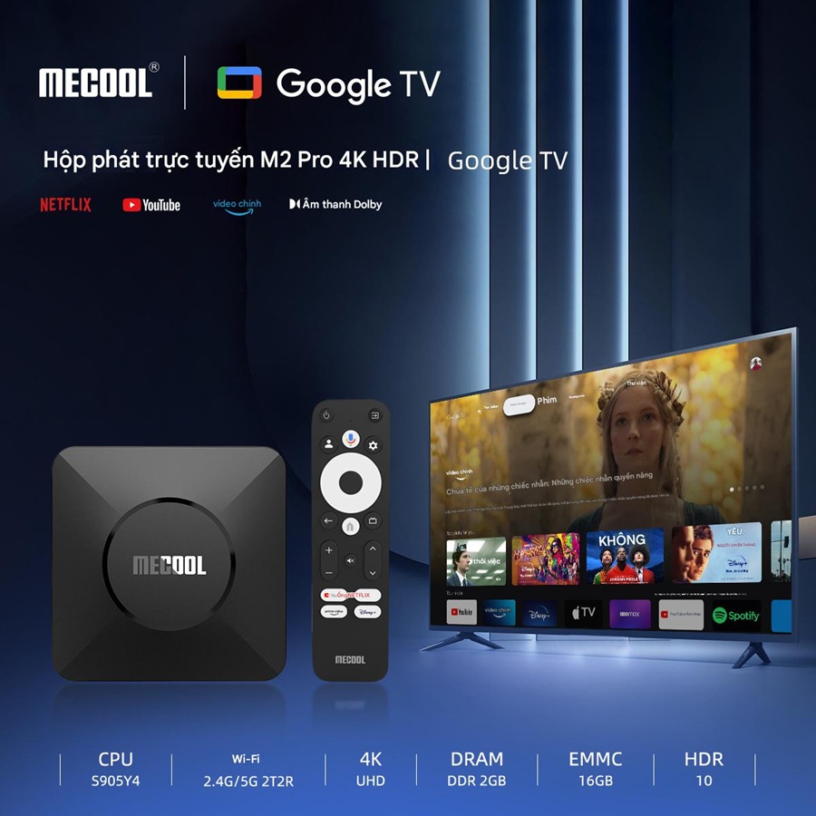 Mecool M2 Pro hỗ trợ độ phân giải 4K@60fps với công nghệ HDR10, mang đến hình ảnh sống động, màu sắc chân thực. Tính năng Chromecast built-in cho phép truyền nội dung từ điện thoại hoặc máy tính bảng lên TV dễ dàng, lý tưởng để xem phim trên Netflix, YouTube hay Prime Video ở chất lượng cao. Đặc biệt, thiết bị được chứng nhận bởi Netflix, đảm bảo trải nghiệm streaming 4K mượt mà, điều mà nhiều Android TV Box khác không làm được.