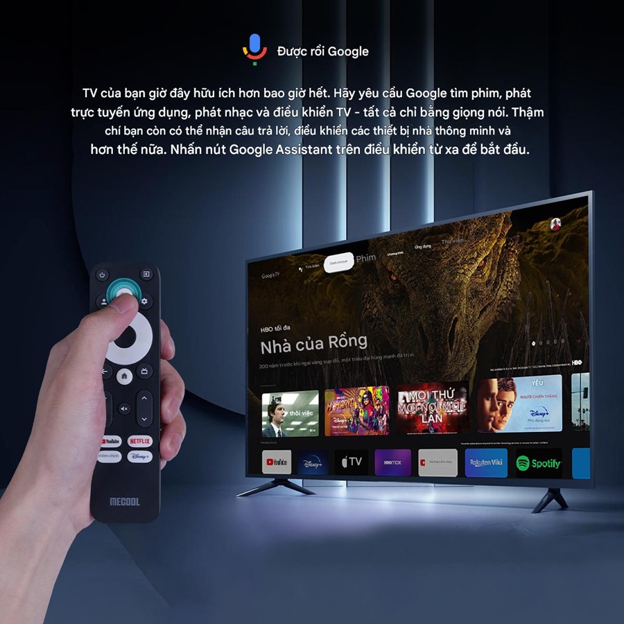 Điều khiển: Sử dụng remote hoặc lệnh thoại qua Google Assistant để tìm kiếm nội dung.