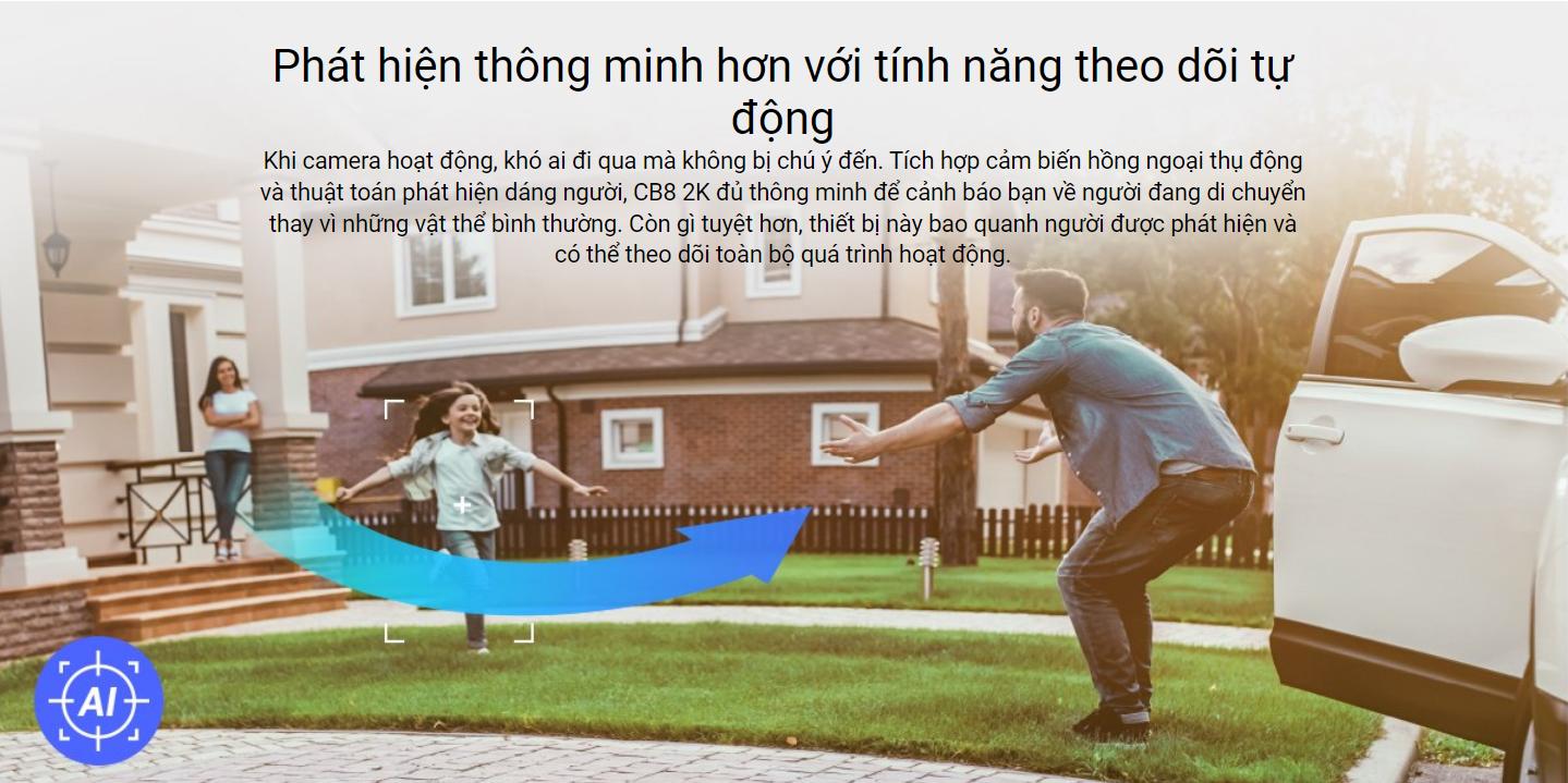 Khi camera hoạt động, khó ai đi qua mà không bị chú ý đến. Tích hợp cảm biến hồng ngoại thụ động và thuật toán phát hiện dáng người, CB8 2K đủ thông minh để cảnh báo bạn về người đang di chuyển thay vì những vật thể bình thường. Còn gì tuyệt hơn, thiết bị này bao quanh người được phát hiện và có thể theo dõi toàn bộ quá trình hoạt động.