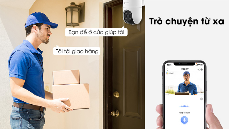Với H8c có thể sử dụng điện thoại để đàm thoại hai chiều với người thân, khách đến thăm nhà, shipper ngay cả khi bạn không có nhà.
