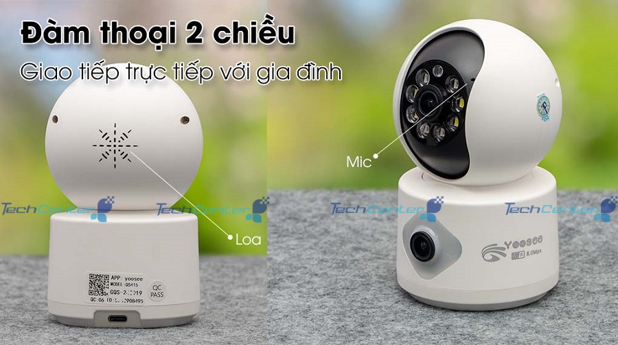 Tích hợp mic và loa, Yoosee 2 mắt trong nhà hỗ trợ đàm thoại hai chiều, cho phép bạn giao tiếp trực tiếp với gia đình hay thậm chí là với những người lạ đang tiến lại gần ngôi nhà của bạn.