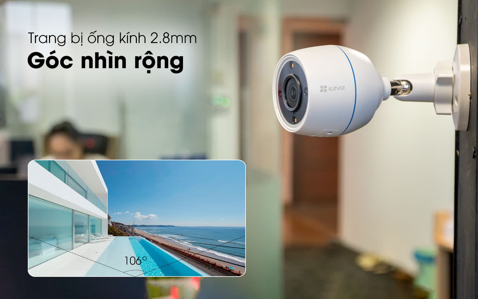 Camera Ezviz có màu ban đêm được trang bị ống kính 2.8mm cho góc nhìn ngang 106°, nhìn chéo 122° mang đến những khung hình có góc nhìn rộng bao quát được xung quanh vị trí lắp đặt. Ở phần chân camera có phần khớp nối cho phép dễ dàng thay đổi được vị trí góc nhìn.