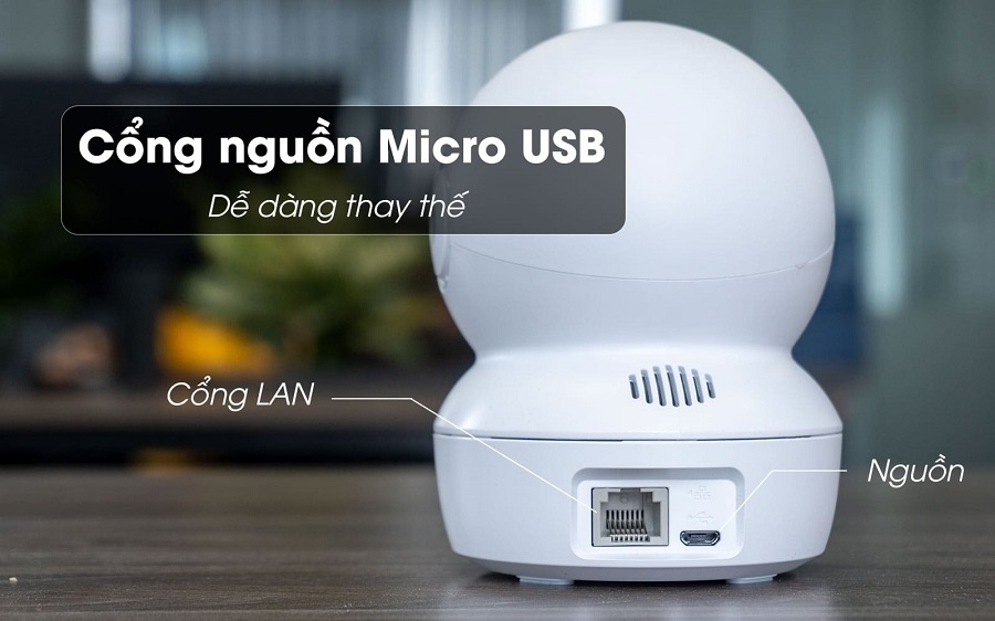 Camera Ezviz C6N 1080P có khả năng kết nối bằng cả wifi và mạng LAN, sử dụng cổng kết nối USB thông dụng.
