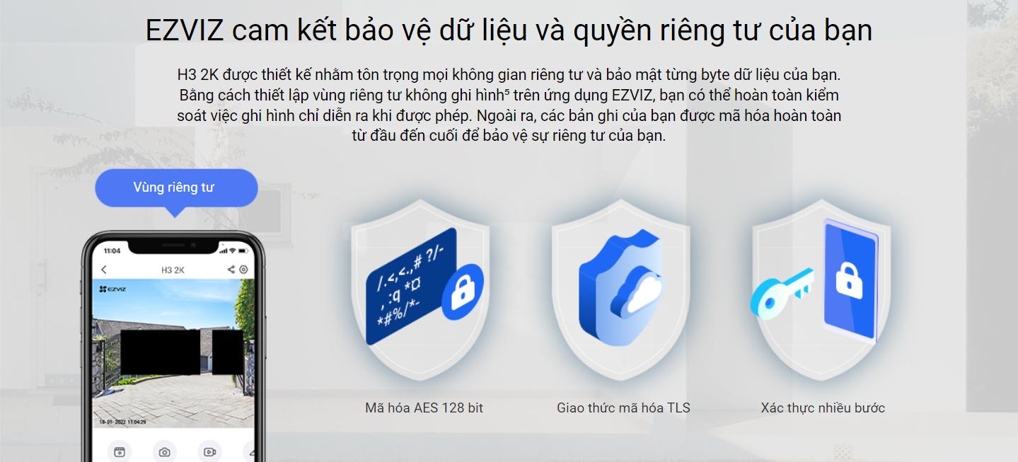 H3 2K hỗ trợ thẻ nhớ cục bộ microSD lên đến 256GB hoặc người dùng có thể đăng ký EZVIZ CloudPlay để lưu trữ đám mây không giới hạn và được mã hóa dữ liệu hoàn toàn.