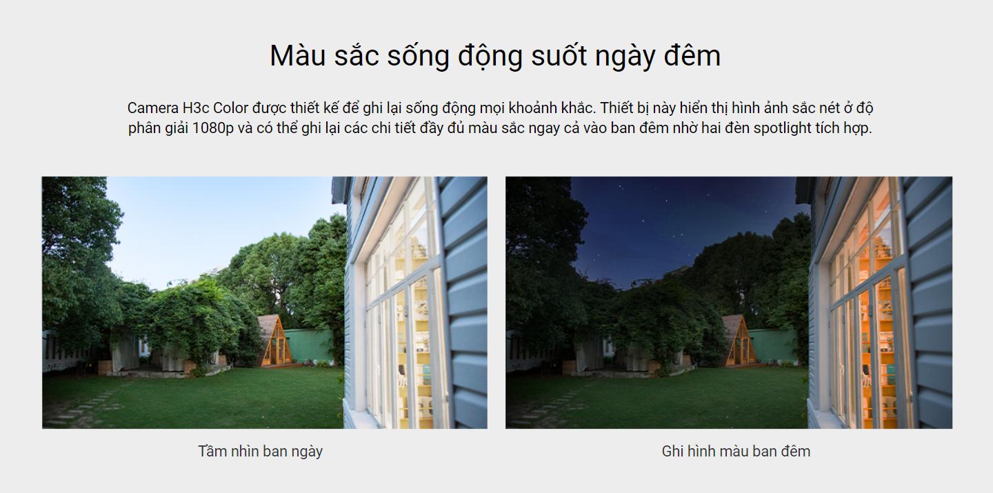 Camera H3c Color được thiết kế để ghi lại sống động mọi khoảnh khắc. Thiết bị này hiển thị hình ảnh sắc nét ở độ phân giải 1080p và có thể ghi lại các chi tiết đầy đủ màu sắc ngay cả vào ban đêm nhờ hai đèn spotlight tích hợp.