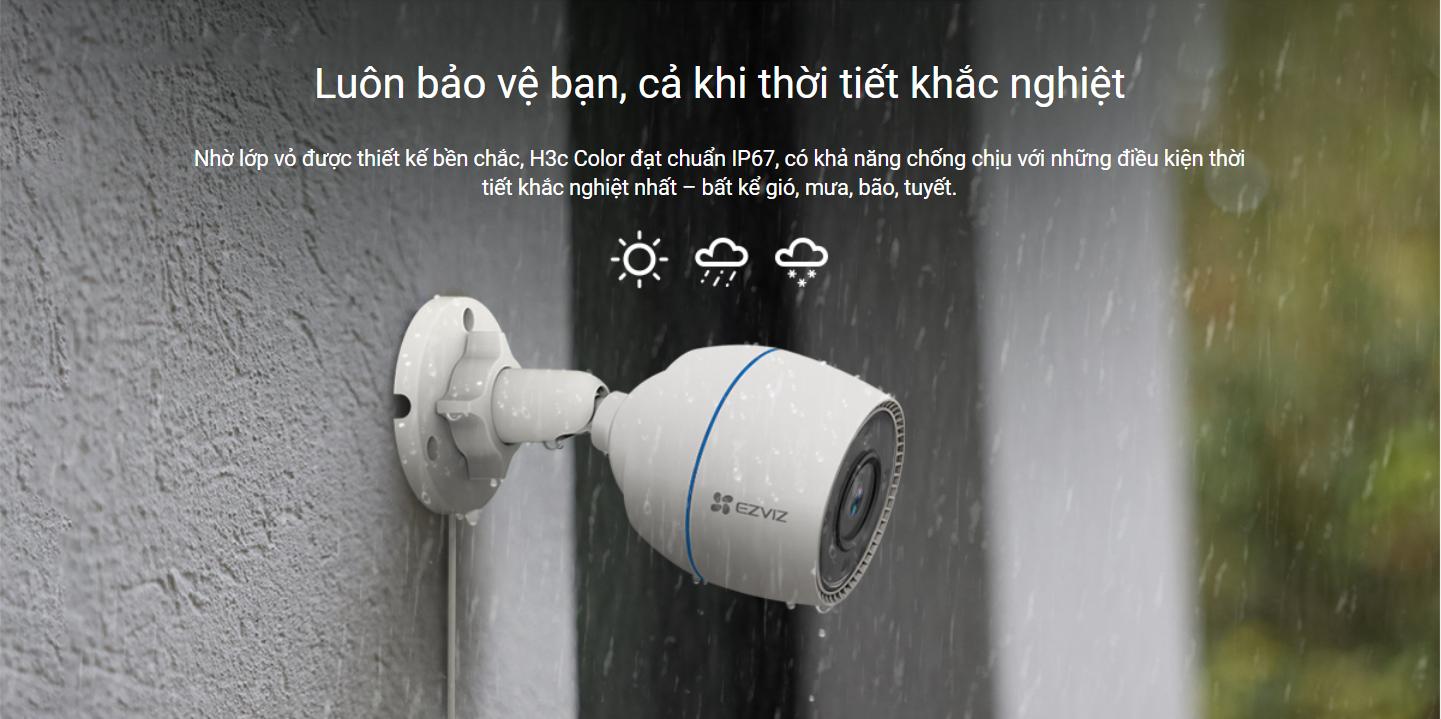 Nhờ lớp vỏ được thiết kế bền chắc, H3c Color đạt chuẩn IP67, có khả năng chống chịu với những điều kiện thời tiết khắc nghiệt nhất – bất kể gió, mưa, bão, tuyết.