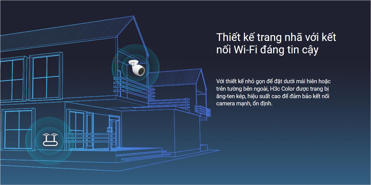 Với thiết kế nhỏ gọn để đặt dưới mái hiên hoặc trên tường bên ngoài, H3c Color được trang bị ăng-ten kép, hiệu suất cao để đảm bảo kết nối camera mạnh, ổn định.