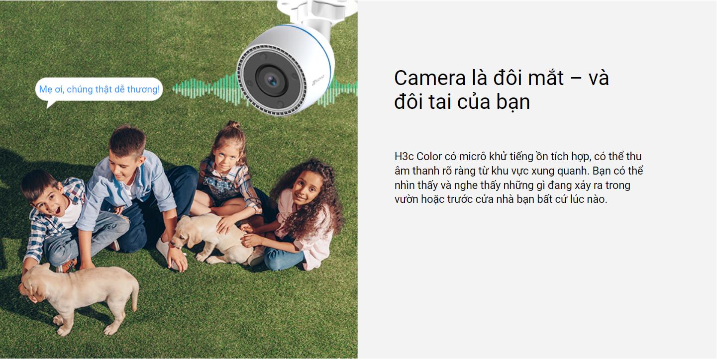 H3c Color có micrô khử tiếng ồn tích hợp, có thể thu âm thanh rõ ràng từ khu vực xung quanh. Bạn có thể nhìn thấy và nghe thấy những gì đang xảy ra trong vườn hoặc trước cửa nhà bạn bất cứ lúc nào.