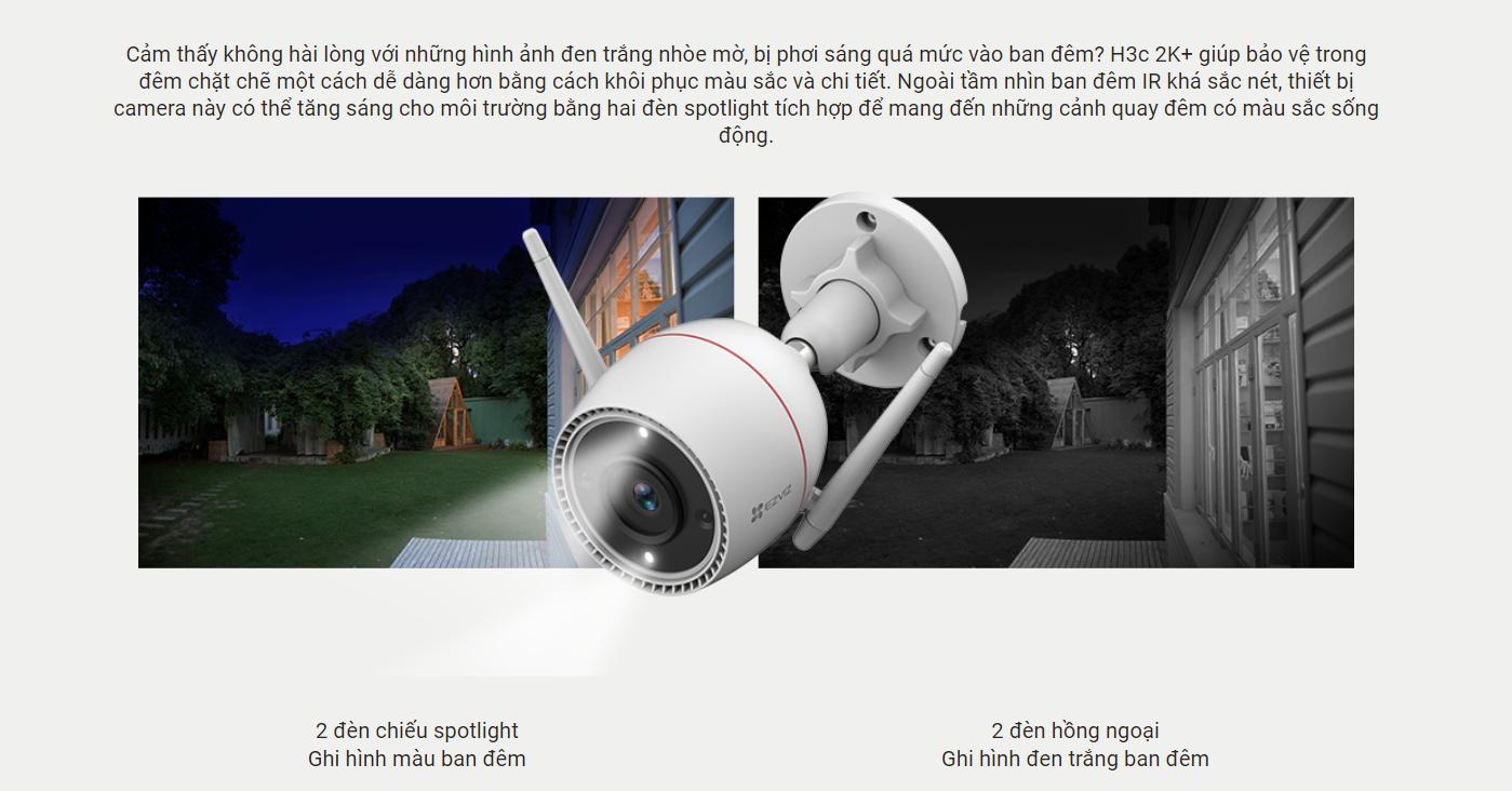 Camera ghi lại mọi việc với độ rõ nét 2K⁺ và hiển thị màu sắc vào ban đêm. H3c 2K⁺ bổ sung thêm tính năng thông minh cho một camera thiết yếu, được thiết kế để đáp ứng tất cả các yêu cầu về an ninh ngoài trời, cả ban ngày lẫn ban đêm. Nhận dạng cử chỉ vẫy tay, đàm thoại hai chiều, phát hiện chuyển động của con người và các tính năng độc đáo đáng kinh ngạc khác, tất cả đều được tích hợp trong thiết bị này.