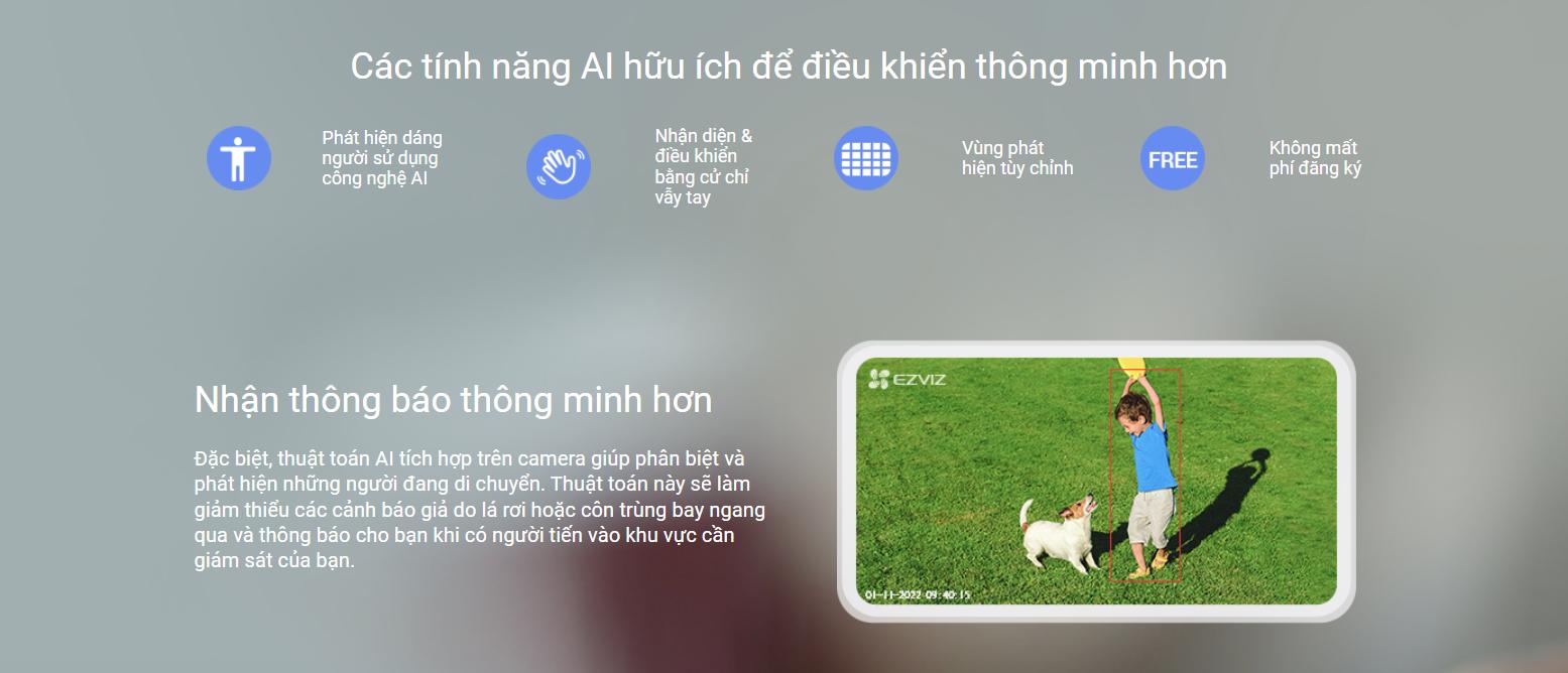 Đặc biệt, thuật toán AI tích hợp trên camera giúp phân biệt và phát hiện những người đang di chuyển. Thuật toán này sẽ làm giảm thiểu các cảnh báo giả do lá rơi hoặc côn trùng bay ngang qua và thông báo cho bạn khi có người tiến vào khu vực cần giám sát của bạn.