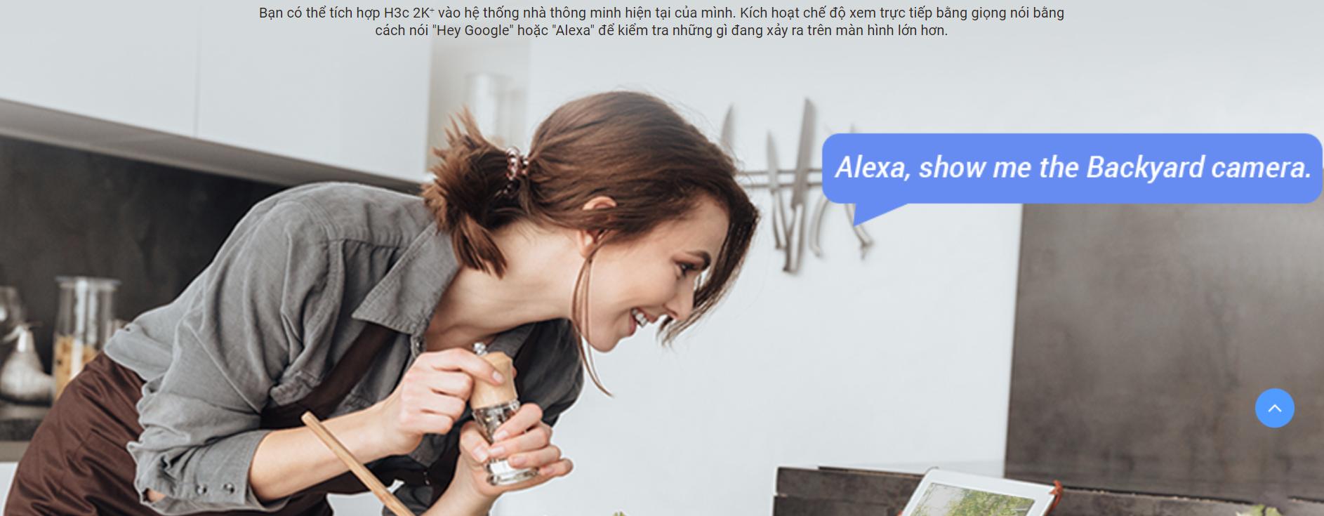 Bạn có thể tích hợp H3c 2K⁺ vào hệ thống nhà thông minh hiện tại của mình. Kích hoạt chế độ xem trực tiếp bằng giọng nói bằng cách nói "Hey Google" hoặc "Alexa" để kiểm tra những gì đang xảy ra trên màn hình lớn hơn.
