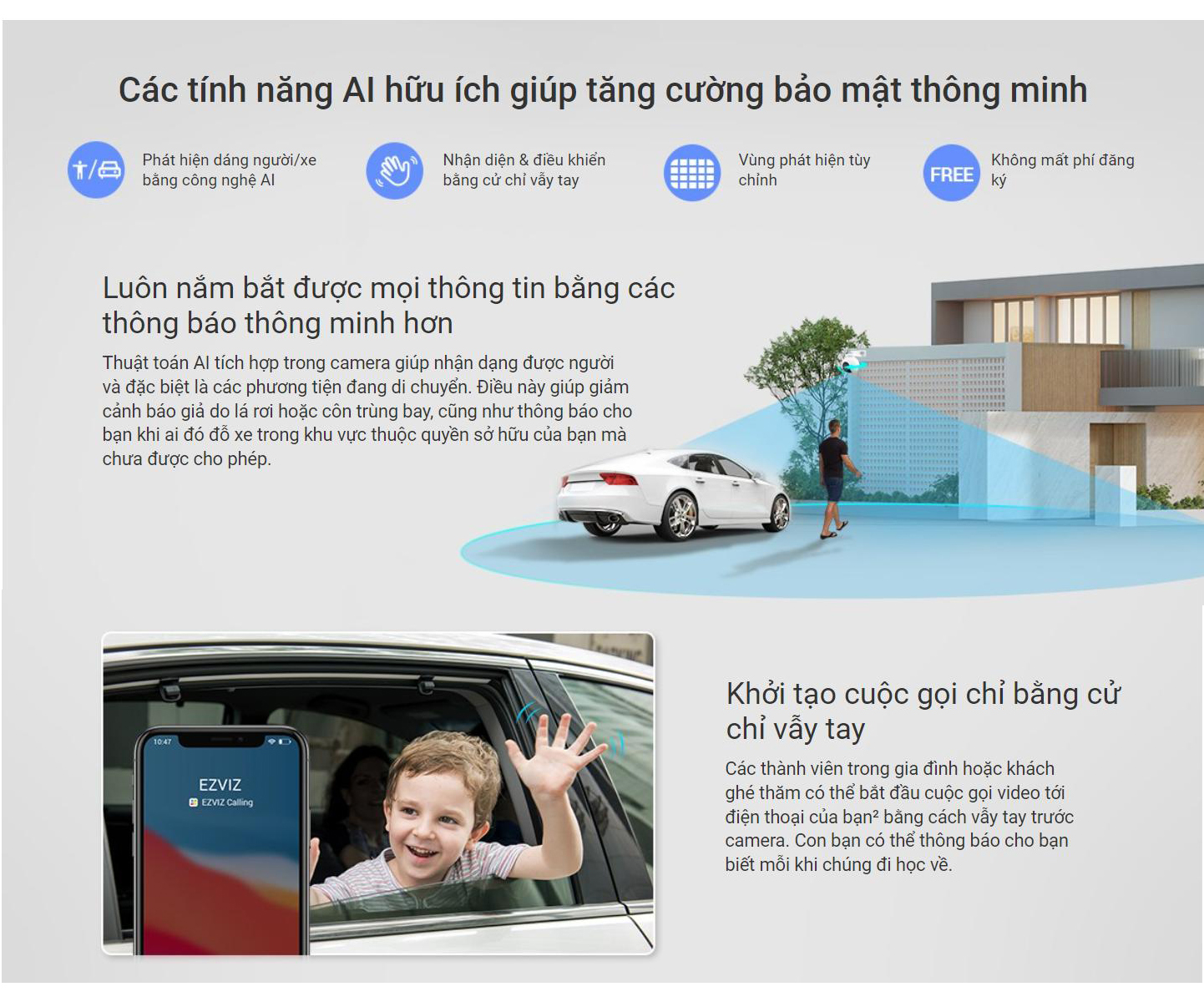 Ở sản phẩm này, nhà sản xuất đã sử dụng các công nghệ AI cho phép nhận diện chính xác người và xe, bắt đầu cuộc gọi bằng cách vẫy tay trước camera, tuỳ chỉnh khu vực ghi hình của camera.