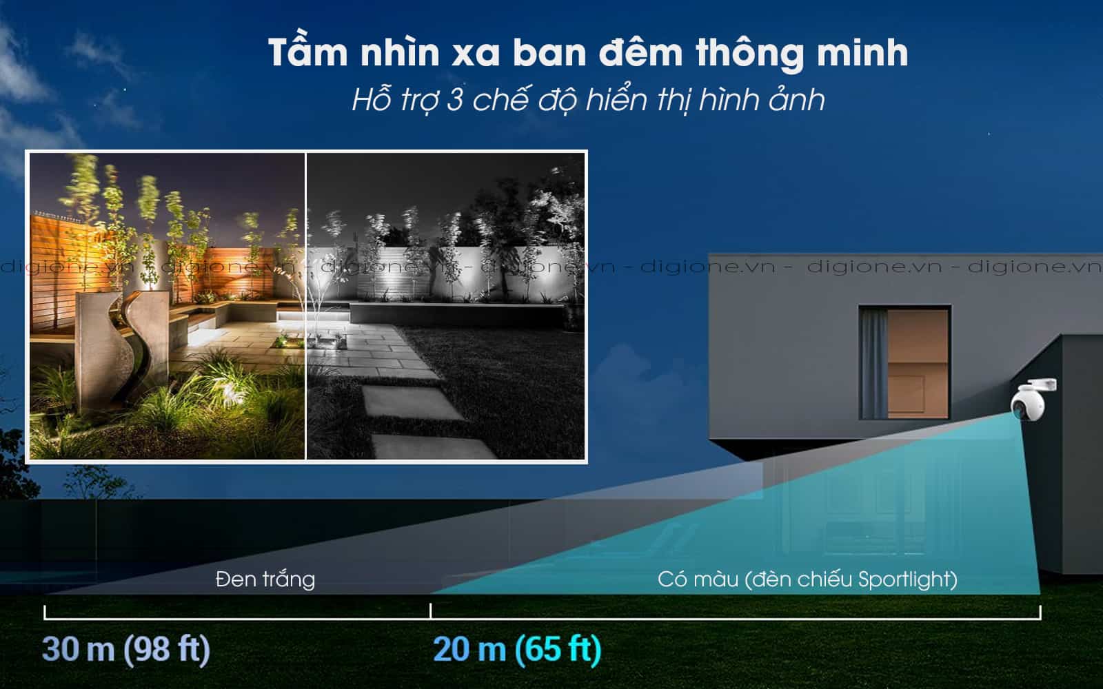 Camera đảm bảo không ai có thể dễ dàng lợi dụng bóng tối để lẻn vào nhà bạn. Camera cung cấp tầm nhìn có màu vào ban đêm, với sự trợ giúp của đèn chiếu spotlight được tích hợp sẵn và khi đèn tắt vẫn đảm bảo tầm nhìn đen trắng rõ nét. Tuyệt vời hơn nữa, bạn có thể đặt camera ở chế độ "tầm nhìn ban đêm thông minh" để camera sẽ tự động chuyển từ nhìn đen trắng sang nhìn màu ngay khi phát hiện chuyển động.