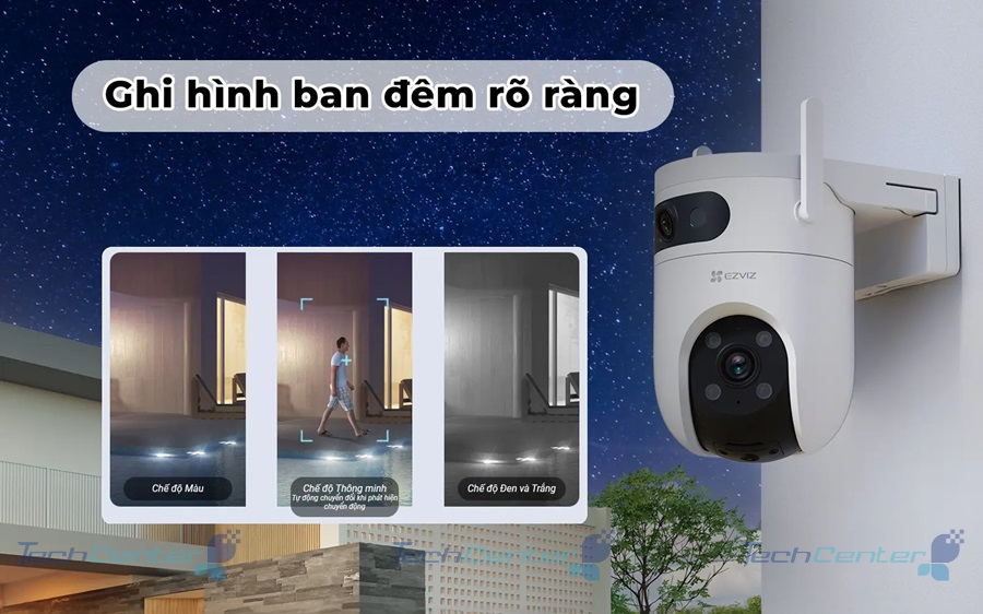 Để giúp bạn có thể theo dõi toàn diện, camera ezviz 2 mắt ngoài trời h9c có khả năng quan sát cả ban đêm có màu hoặc hồng ngoại với nhiều chế độ.
