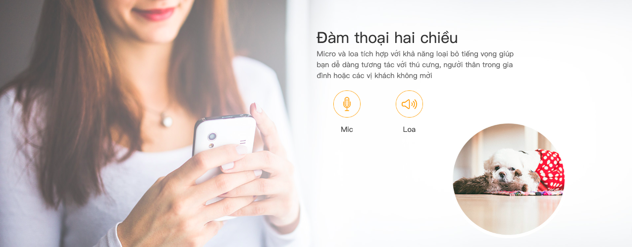 Loa và micro được tích hợp có tính năng khử tiếng vọng để bạn có thể tương tác với gia đình, vật nuôi hoặc thậm chí là kẻ đột nhập.
