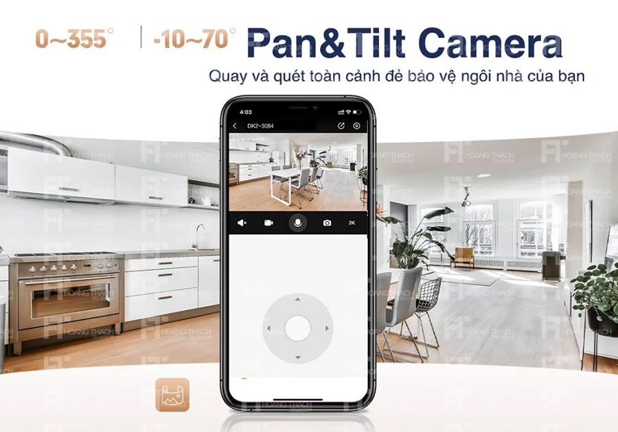 Với khả năng xoay ngang từ 0°- 355° và xoay dọc từ -5°- 50°, thiết bị này cho phép người dùng quan sát toàn diện không gian sống.