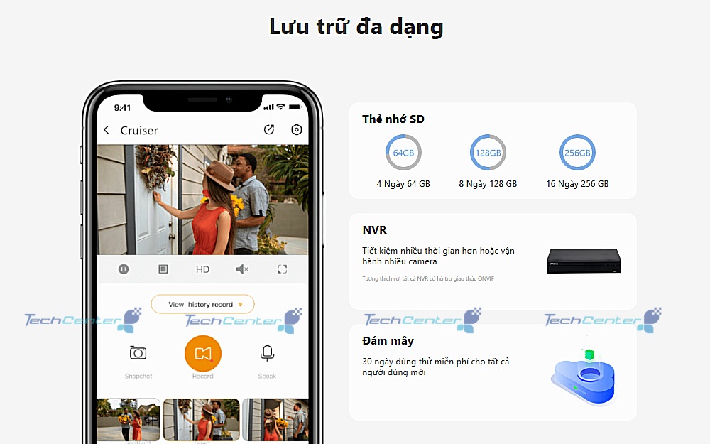 Để xem lại lịch sử ghi hình của Camera Imou Ranger RC 4MP IPC-GK2CP-4C0W người dùng có thể có thể lưu trữ bằng 2 phương thức: thẻ nhớ (tối đa 256GB), Cloud (có mất phí).