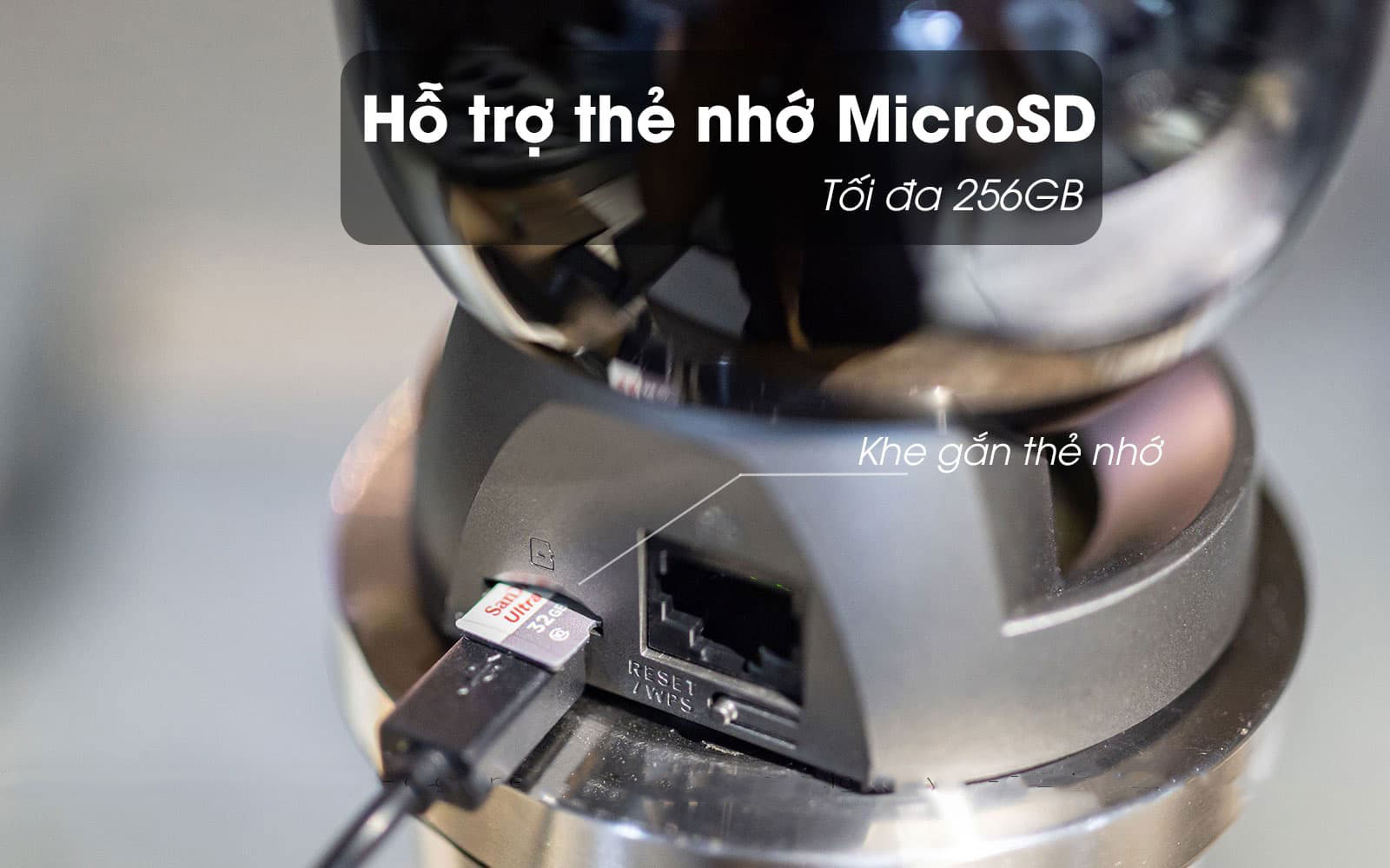 Camera wifi thông minh hỗ trợ khe cắm thẻ nhớ dung lượng lớn lên đến 256GB cho phép bạn thoải mái lưu trữ mà không cần lo lắng về dung lượng. Bạn có thể mua thẻ nhớ, phù hợp với nhu cầu sử dụng: