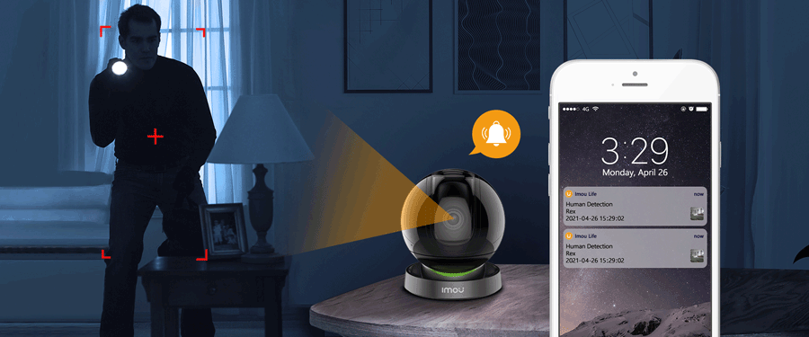 Với thiết kế hình cầu của camera cho phép IMOU IPC-A46LP xoay 355 độ và nghiêng 90 độ. Đảm bảo mọi ngóc ngách của căn phòng đều được bao phủ, không để lại điểm mù.