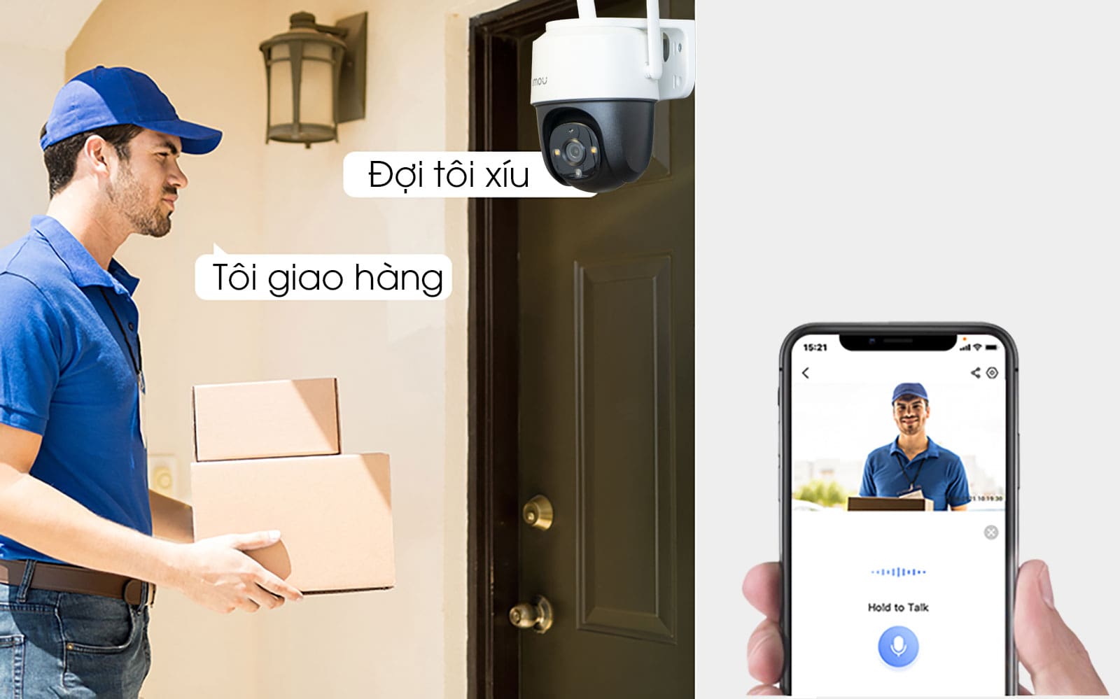 Trong khu vực mà camera quan sát có thể nói chuyện đàm thoại được 2 chiều từ xa vì được tích hợp mic và loa.