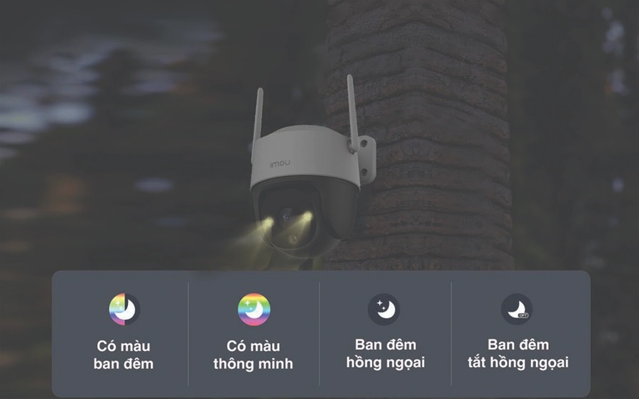 Camera có 4 chế độ ban đêm: Tự động, Full Color, Hồng ngoại, Tắt, cho hình ảnh rõ ràng trong mọi điều kiện sáng.