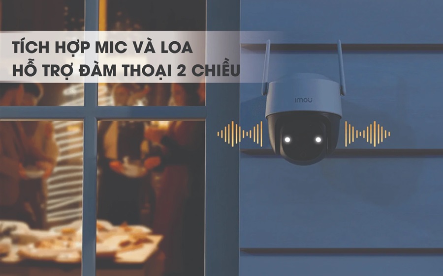 Tích hợp micro và loa giúp người dùng có thể giao tiếp trực tiếp với người ở khu vực quan sát thông qua ứng dụng trên điện thoại.