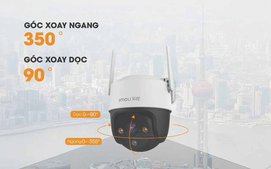 Camera có khả năng xoay ngang 355° và dọc 90°, cho phép quan sát toàn bộ khu vực mà không có điểm mù.