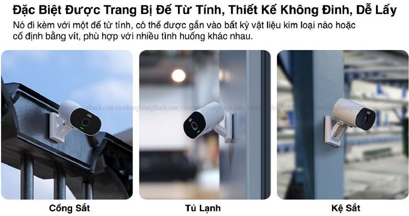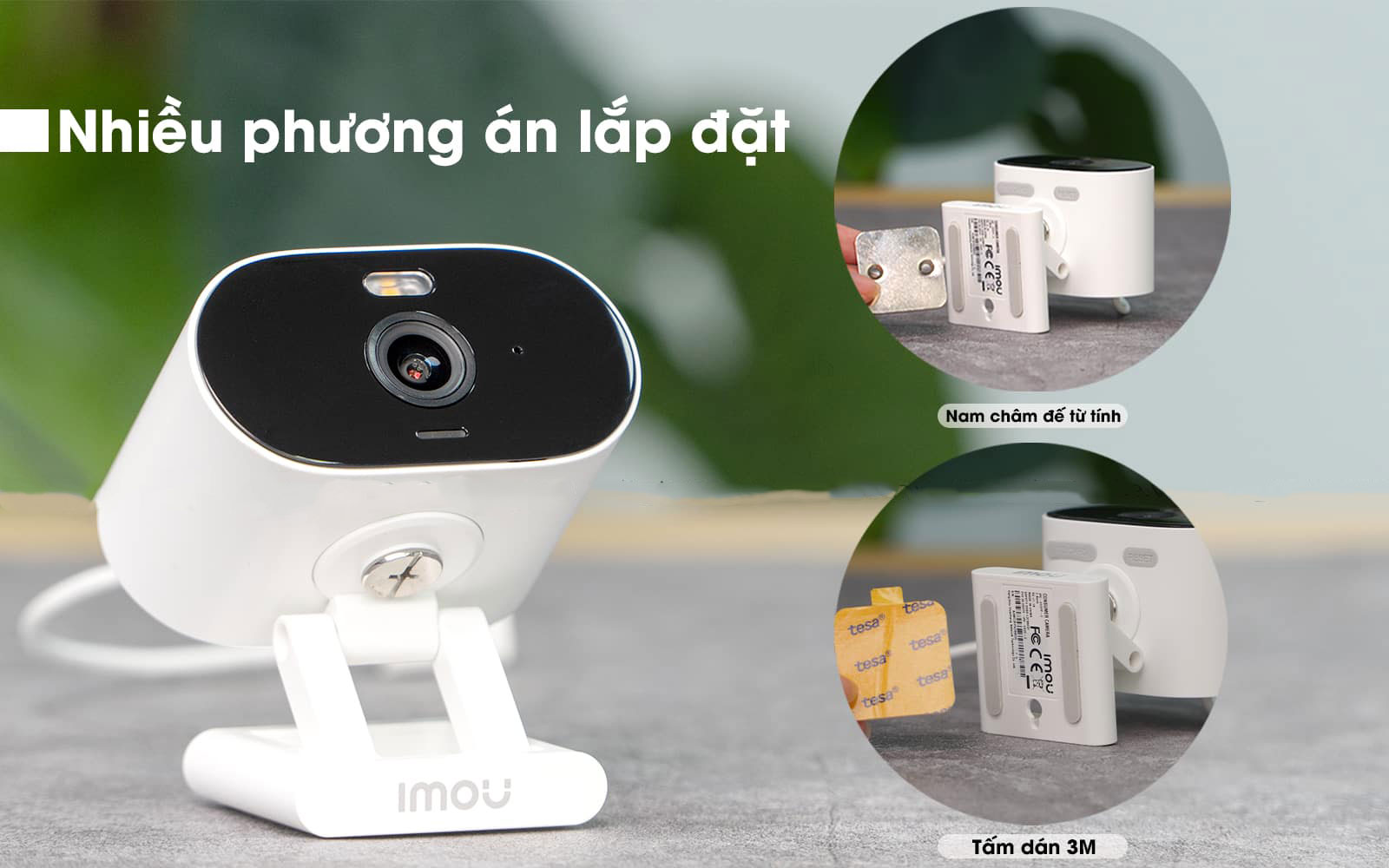 Không chỉ lắp đặt bằng ốc vít bắn tường, camera imou Versa còn có thể lắp bằng nam châm đế từ tính hoặc tấm dán 3M.