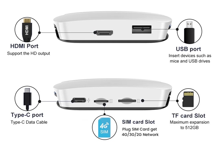 Có thể khẳng định trên thị trường Android Box Ô Tô thì mẫu Carlinkit Tbox UHD SDM660 là đầu android box cho oto có nhiều cổng kết nối nhất hiện nay với đầy đủ các cổng kết nối như USB-A để hỗ trợ kết nối với chuột bay, remote giọng nói hoặc camera hành trình, cổng HDMI out để kết nối với những xe có màn hình phụ phí sau hoặc cho những xe lớn lắp sẵn màn hình tivi lên xe.