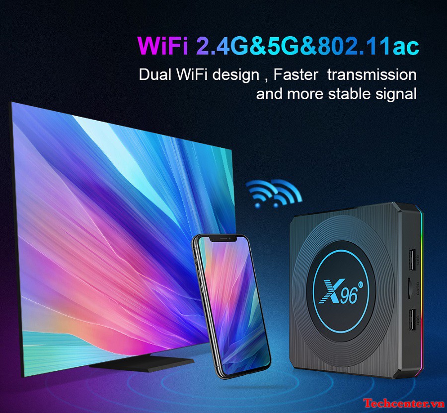 Tivi box giải trí online phụ thuộc tuyệt đối vào tốc độ đường truyền mạng internet, nên X96x4 được trang bị 2 băng tần wifi 2.4G và 5G để tương thích với mọi thiết bị mạng router các nhà mạng hiện nay trên thị trường, cho tốc giải trí online như xem phim, truyền hình, thể thao, youtube...mượt mà không bị dán đoạn hoặc xảy ra tình trạng giật lác khi xem.