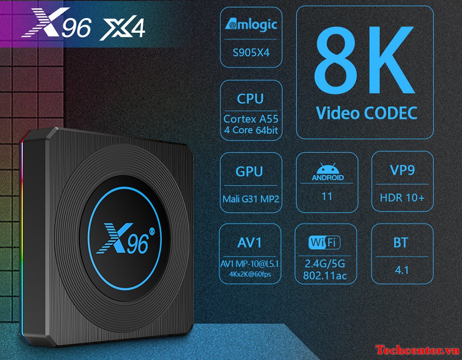 Android TV Box X96x4 ram 4gb là mẫu TV Box thế hệ mới nhất năm 2024 của Eny sử dụng CPU Amlogic S905X4. Ngoài ra, thiết bị còn được trang bị cấu hình mạnh mẽ như Ram 4GB, bộ nhớ trong 32GB, Android 11, Bluetooth, wifi 2 băng tần.