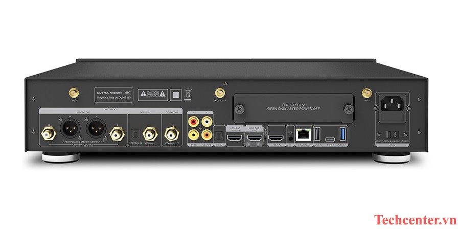 Đầu nối RCA chất lượng cao và đầu nối XLR cân bằng chuyên nghiệp được tích hợp phía sau Đầu Dune HD Ultra Vision 4K