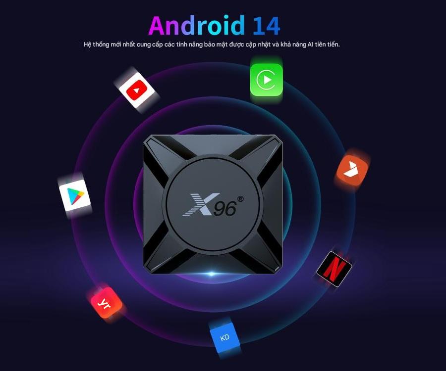 X96 M300 là một trong những thiết bị phát trực tuyến đầu tiên được trang bị **Android 14**, mang đến trải nghiệm người dùng tinh tế, phù hợp cho hiệu suất và quyền riêng tư: