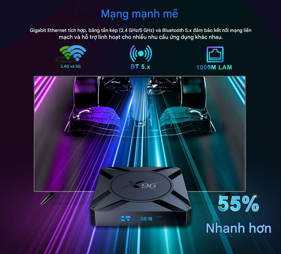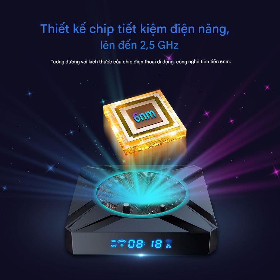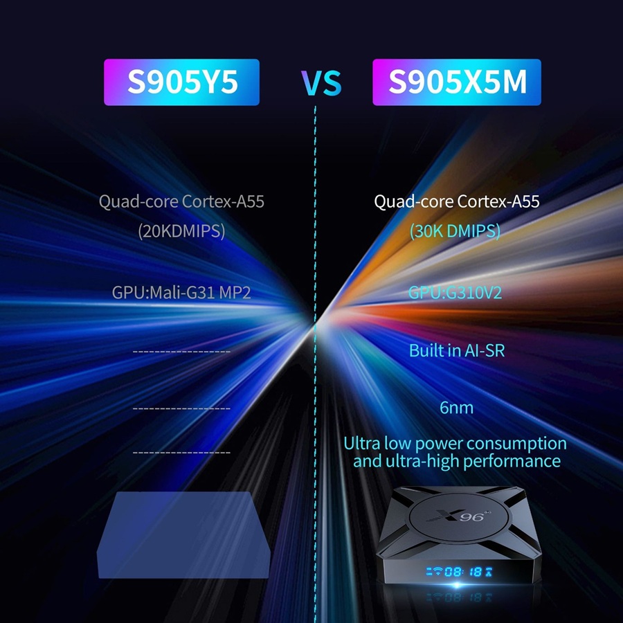 Trái tim của X96 M300 nằm ở Amlogic S905X5M chipset, bộ xử lý ARM Cortex-A55 lõi tứ thế hệ tiếp theo có tốc độ lên tới 2.0 GHz. Được xây dựng trên công nghệ xử lý 12nm tiên tiến, chipset này cung cấp khả năng xử lý nhanh hơn 30% và hiệu suất năng lượng được cải thiện 20% so với các thế hệ trước. Tích hợp GPU ARM Mali-G31 MP2 đảm bảo hiển thị mượt mà nội dung 4K UHD và chơi game thông thường, trong khi công cụ giải mã video chuyên dụng của chipset hỗ trợ các định dạng **H.265/HEVC, VP9 và AV1**—bảo vệ thiết lập của bạn cho các tiêu chuẩn phát trực tuyến mới nổi trong tương lai.