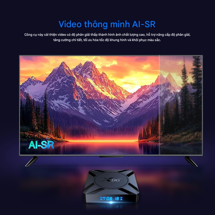 Việc tích hợp công nghệ AI-SR (Adaptive Super Resolution) giúp nâng cao hơn nữa trải nghiệm xem. Bằng cách tận dụng khả năng nâng cấp do AI điều khiển, X96 M300 chuyển đổi nội dung có độ phân giải thấp thành chất lượng gần 4K, tăng cường chi tiết và giảm nhiễu để có hình ảnh sắc nét hơn—lý tưởng cho các nền tảng nén luồng video để tiết kiệm băng thông.