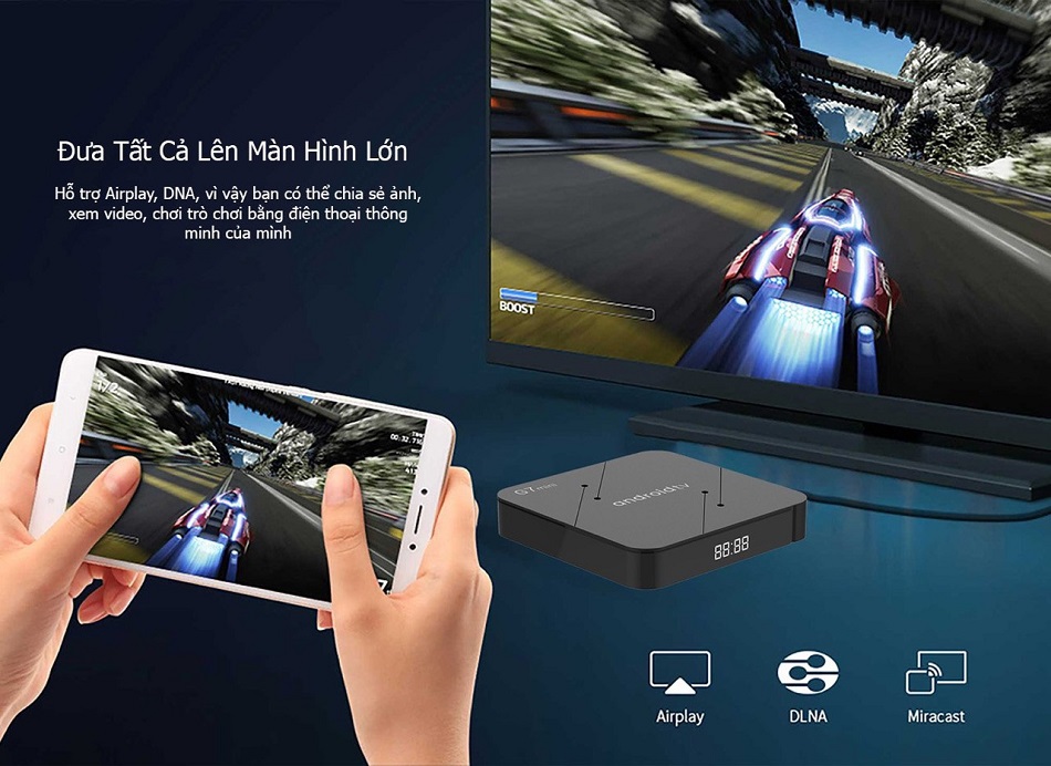 Enybox G7mini Android TV 11 hỗ trợ chức năng DLNA & AirPlay & Miracast, có nghĩa là video/nhạc/ảnh của bạn có thể dễ dàng được phản chiếu từ thiết bị Android và thiết bị iOS của bạn sang màn hình lớn hơn và tốt hơn.