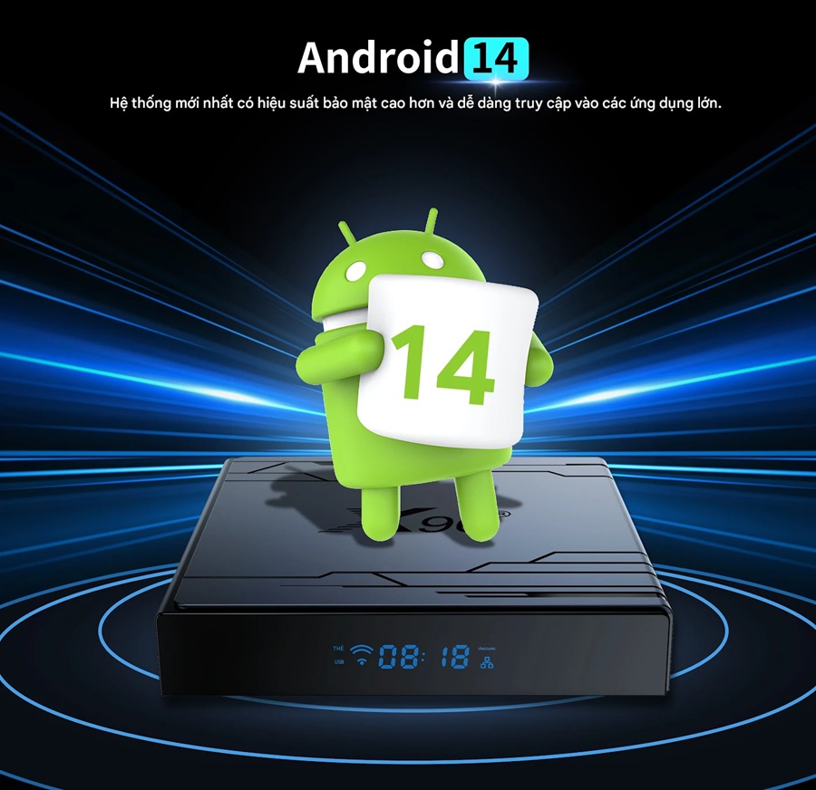 Chạy trên Android 14, Enybox X96nex hỗ trợ cài đặt hàng ngàn ứng dụng từ Google Play như Netflix, YouTube, Disney+, Viettel TV. Giao diện thân thiện, hỗ trợ Google Assistant điều khiển giọng nói tiếng Việt.