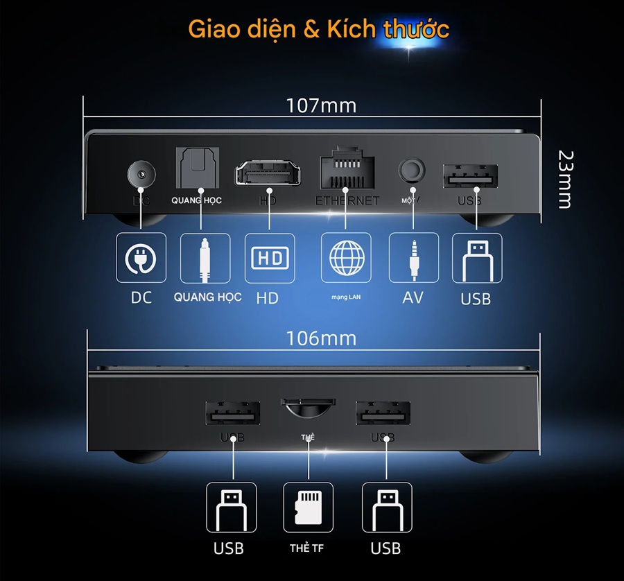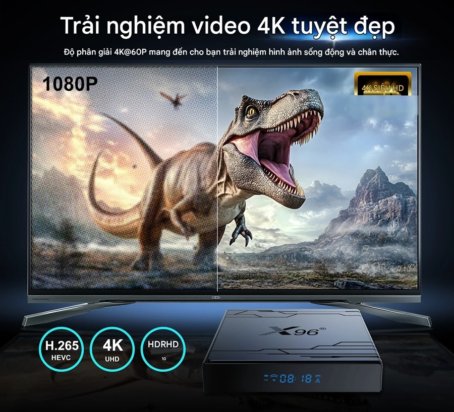 Chip Amlogic S905Y5 Quad-core ARM Cortex-A55 mang lại tốc độ xử lý nhanh chóng, tiết kiệm năng lượng hơn 20% so với thế hệ trước. Kết hợp GPU Mali-G31 MP2, thiết bị xử lý hình ảnh mượt mà, màu sắc sống động – lý tưởng cho xem phim 4K Netflix, YouTube hoặc chơi game nhẹ.