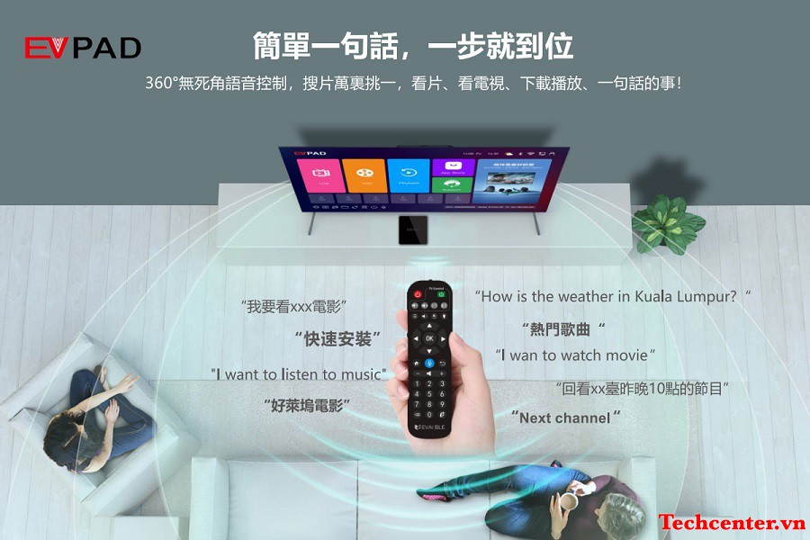 Với trợ lý EVAI và RC thoại đa hướng 360, bạn có thể nhanh chóng phát phim, xem các kênh truyền hình và nghe nhạc xung quanh nhà của mình.