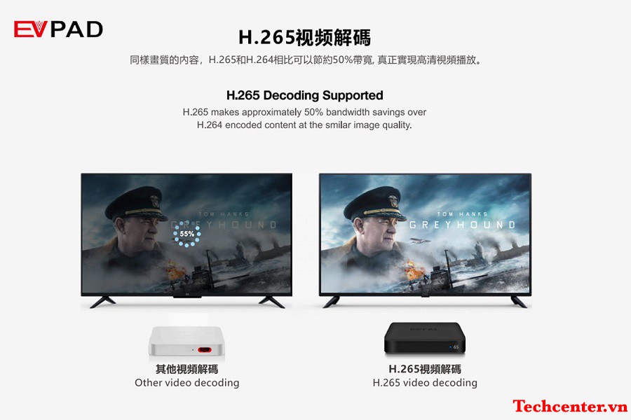 EVPAD 6S hộp Android- Hỗ trợ giải mã H.265