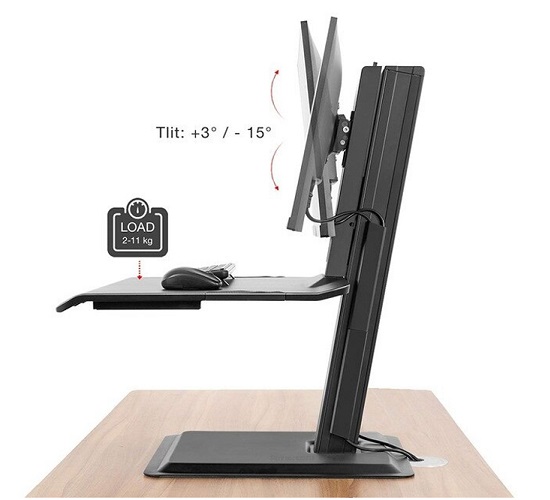 Được thiết kế trong hệ thống ròng rọc đối trọng cơ học, bàn phím và màn hình được di chuyển song song chỉ bằng một thao tác đẩy hoặc kéo để dễ dàng thiết lập chiều cao làm việc của bạn