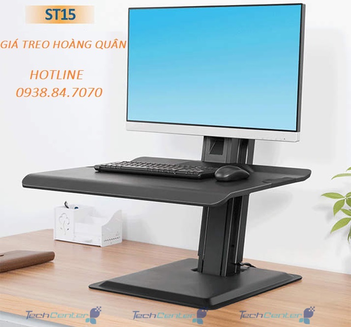 - Giá đỡ màn hình kèm bàn phím để bàn NB ST15 dùng cho màn hình từ 22 đến 32 inch có kèm mâm để bàn phím tiện dụng khi chúng ta làm việc kết hợp giữa ngồi và đứng.