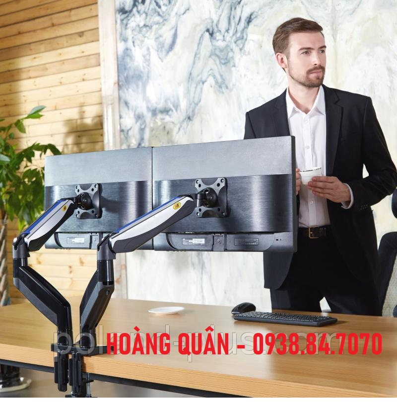 - Bạn hoàn toàn có thể treo cùng lúc 2 màn hình lên giá treo NB F185A từ 22inch đến 27inch cùng 1 lúc để tạo thuận lời cho công việc của bạn thì nó còn có thể xoay được rất nhiều tư thế để bạn có 1 vị trí tốt nhất để có thể ngồi thoải mái nhất có thể.