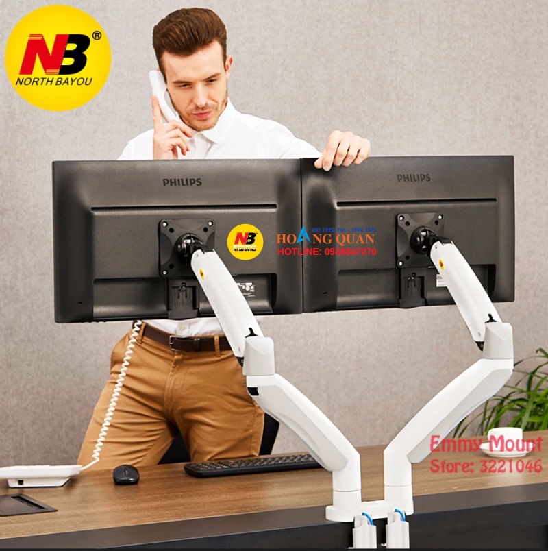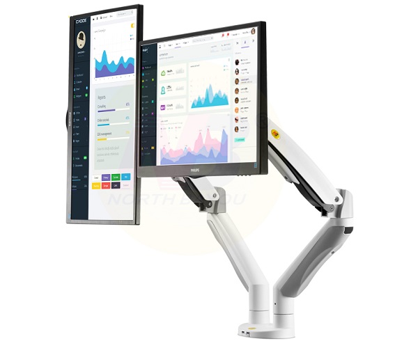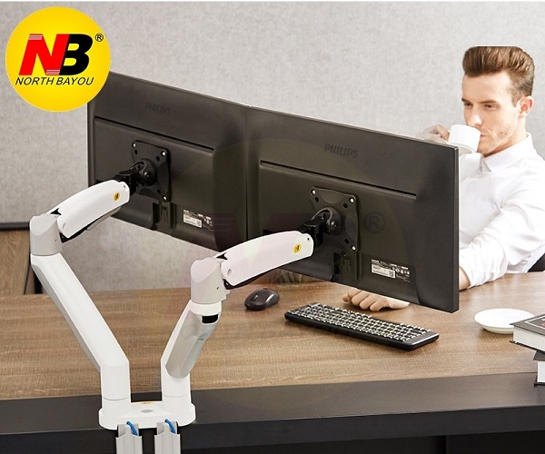 Giá đỡ màn hình NB F195A là giá treo gắn 2 màn hình máy tính gắn bàn dành cho màn hình từ 22 đến 32 inch với tải trọng lên đến 24 kg.