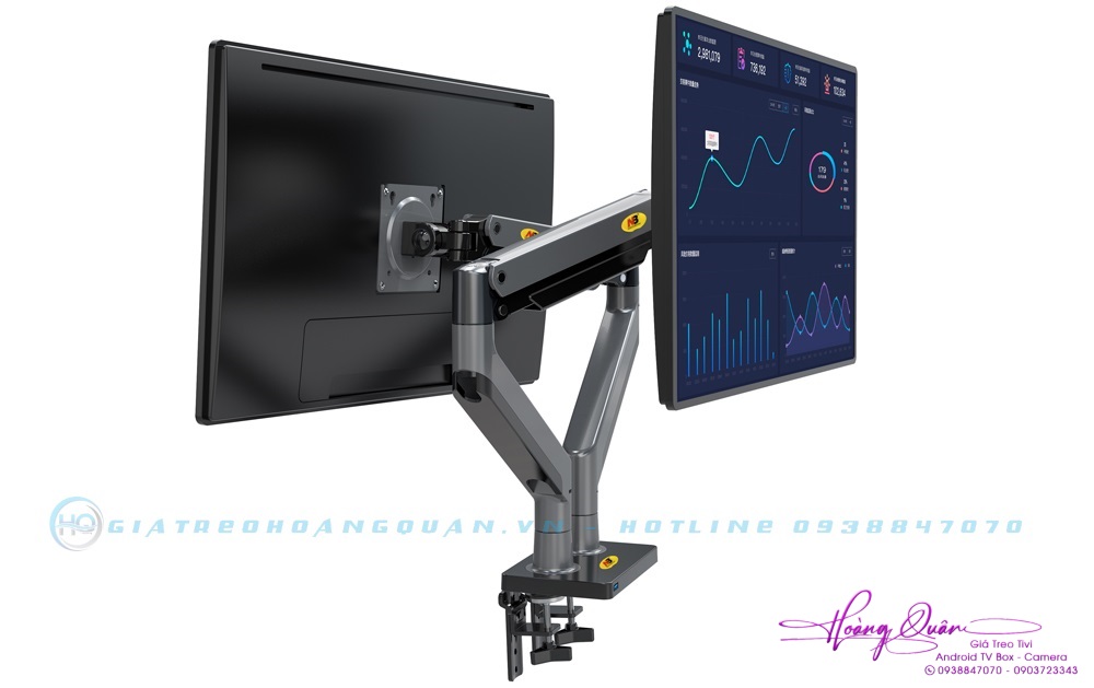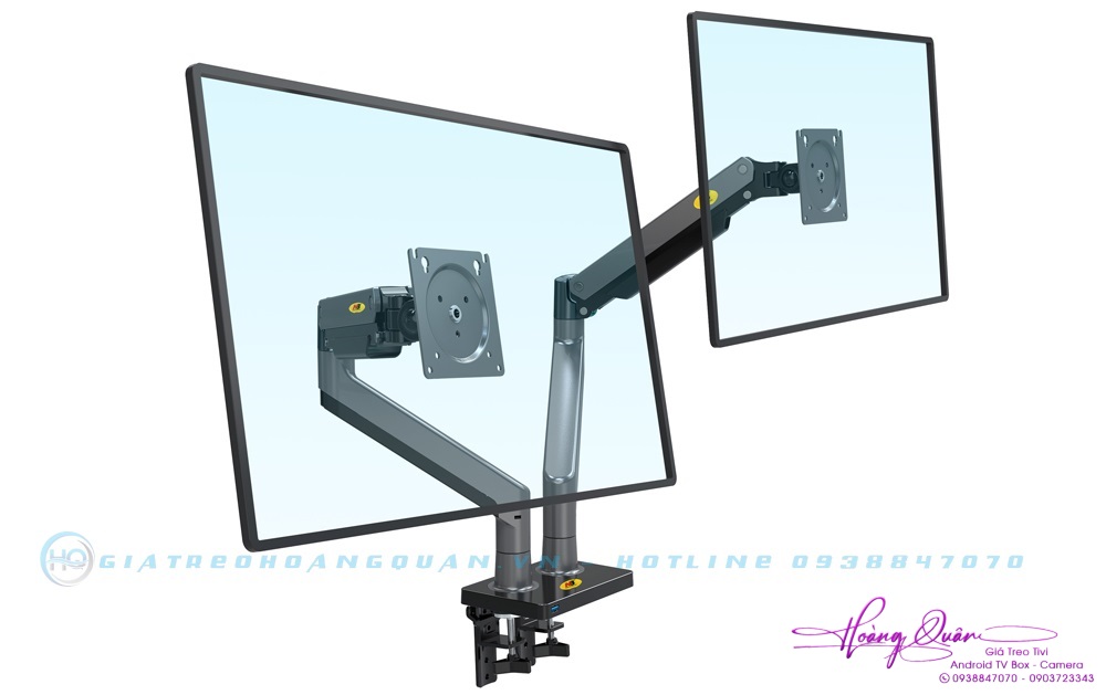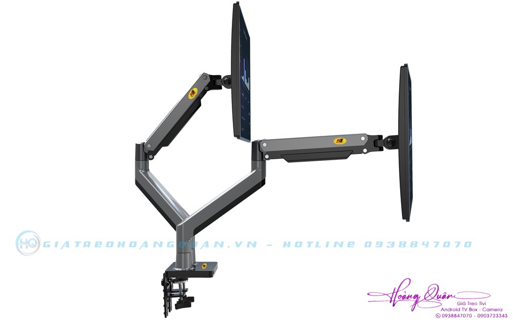 Giá treo 2 màn hình máy tính NB-G35 model mới nhất hiện nay của hãng North Bayou năm 2023, hỗ trợ treo cùng lúc 2 màn hình máy tính từ 22 inch đến 32 inch, có 2 cánh tay dài có thể xoay đa năng nhiều hướng.